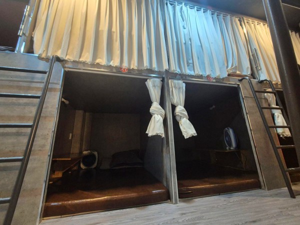 Khách có thể học bài, làm việc, nghỉ ngơi trong những giường nằm thế này, nhưng bắt buộc phải tuân thủ nội quy của quán