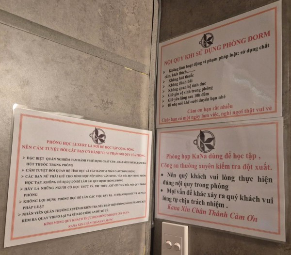 Nội quy treo trong phòng tại một quán cà phê giường nằm