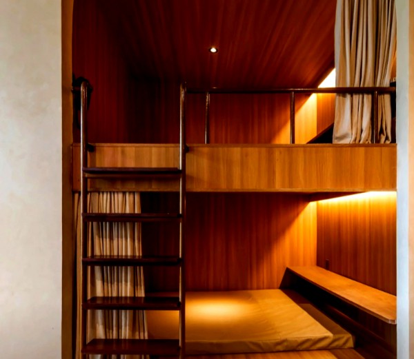 Phía trong quán cà phê giường nằm