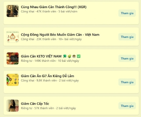 Có nhiều hội, nhóm chia sẻ cách giảm cân. Tuy nhiên cần cẩn thận với những phương pháp cực đoan