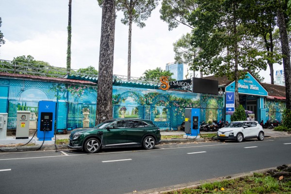 Một trạm sạc nhượng quyền V-GREEN vừa đi vào hoạt động tại số 6 đường Huyền Trân Công Chúa, TP.HCM (phía sau Dinh Độc Lập). Trạm sạc gồm 2 trụ sạc nhanh DC 120 kW với 4 cổng sạc. Đây là một trong 3 trạm sạc gây chú ý trên mạng xã hội thời gian gần đây vì nằm trên những tuyến phố trung tâm, gần các địa điểm du lịch, đông người qua lại tại TP.HCM.