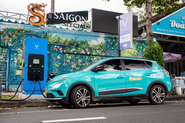 Anh Phạm Anh Quyết, doanh nhân sống tại khu vực Bình Dương (nay là TP.HCM), lái VF e34 tới gặp khách hàng ở một quán cafe gần Dinh Độc Lập, nên tiện ghé vào sạc.