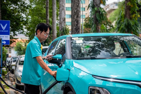 Với chiếc VinFast VF e34 mà anh Lợi đang vận doanh, chỉ cần 30-40 phút để sạc đầy với trụ sạc DC 120 kW. Anh Lợi thường sạc xe 2 lần/ngày: một lần vào buổi tối và một lần vào buổi trưa. Thời gian sạc 30-40 phút vào buổi trưa cũng giúp anh tranh thủ thời gian ăn uống, nghỉ ngơi, tái tạo năng lượng để tiếp tục vận doanh vào buổi chiều.
