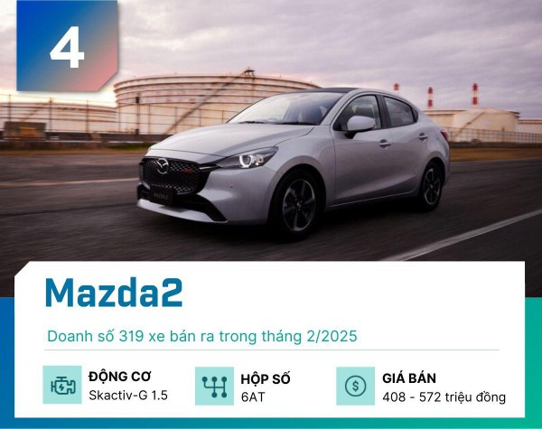 Dưới đây là danh sách 5 mẫu sedan bán chạy nhất tại Việt Nam tháng 2/2025: