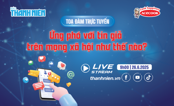 Tọa đàm với chủ đề "Ứng phó với tin giả trên mạng xã hội như thế nào?" do Báo Thanh Niên tổ chức với sự đồng hành của Công ty cổ phần Acecook Việt Nam sẽ diễn ra vào 9 giờ sáng 26.6 tại Báo Thanh Niên.