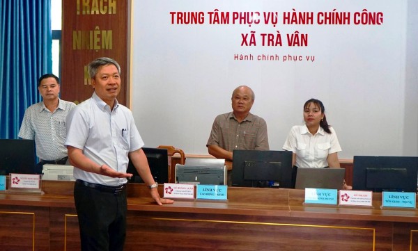 Ông Hồ Quang Bửu, Phó chủ tịch UBND TP.Đà Nẵng, kiểm tra tại Trung tâm phục vụ hành chính công xã Trà Vân ẢNH: THIỆN TÙNG
