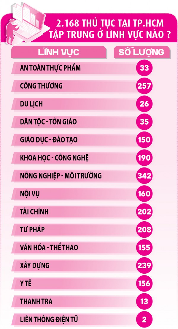 2.168 thủ tục tại TP.HCM tập trung ở lĩnh vực nào ?