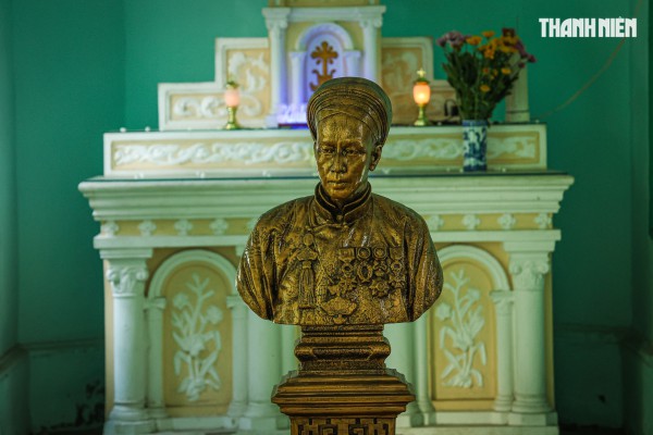Tượng bán thân của ông Petrus Trương Vĩnh Ký ở trong nhà mồ ẢNH: HOA AN