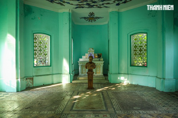Nhà mồ có 3 mộ phần: ông Petrus Ký, vợ Vương Thị Thọ và con trai Trương Vĩnh Thế, tất cả đều được chôn dưới đất và lát phẳng với nền ẢNH: HOA AN