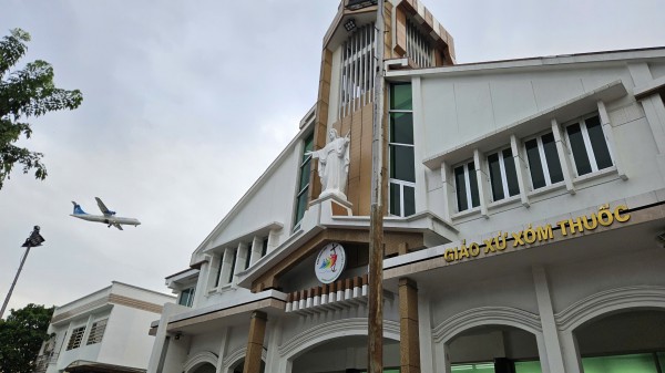 Máy bay bay ngang qua giáo xứ Xóm Thuốc (đường Quang Trung, phường Gò Vấp)