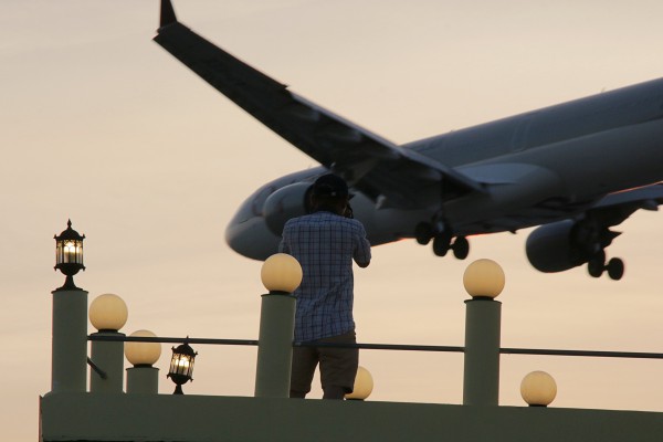 Với khoảng cách cực gần, người đứng bên dưới tưởng chừng có thể chạm vào máy bay khi đang hạ cánh
