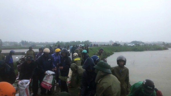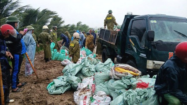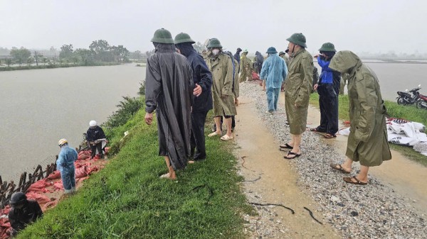 Để gấp rút khắc phục sự cố, chính quyền địa phương đã huy động hơn 300 người, gồm các lực lượng công an, dân quân tự vệ, cán bộ xã và người dân tập trung vá đê.