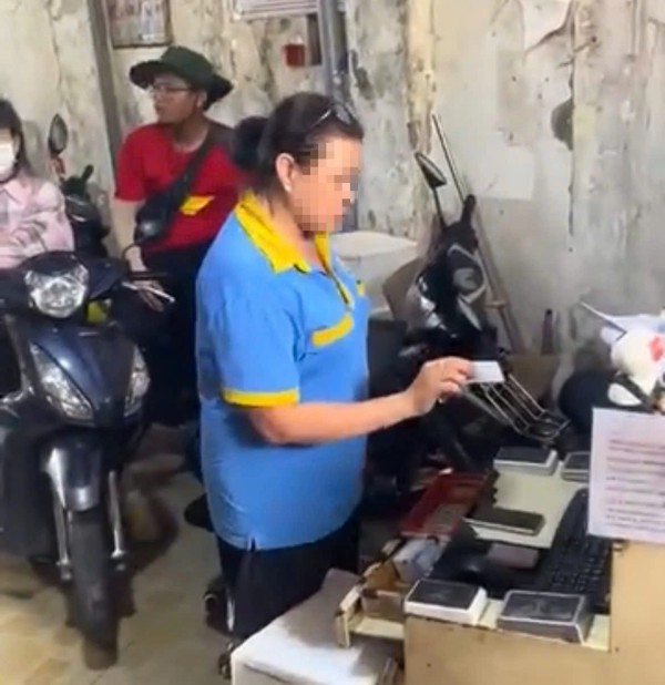 Nữ nhân viên thu 100.000 đồng/xe máy tại bãi giữ xe ở Q.3 (TP.HCM)