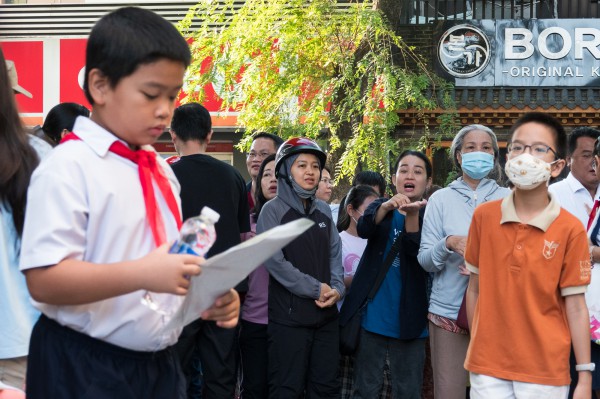 Ghi nhận tại điểm thi Trường THCS-THPT Trần Đại Nghĩa, chị Hoàng Yến, ngụ Q.Bình Thạnh, cho biết con gái đã ôn luyện từ cuối năm 2024 ở một trung tâm để chuẩn bị cho bài khảo sát vào lớp 6 Trường Trần Đại Nghĩa. Ở nhà, con cũng thường xuyên luyện đề theo cấu trúc đề thi thật và chị sẽ bấm giờ nhằm giúp con rèn kỹ năng quản lý thời gian. "Tôi canh giờ từng phần để con quen với áp lực thi thật", nữ phụ huynh nói.
