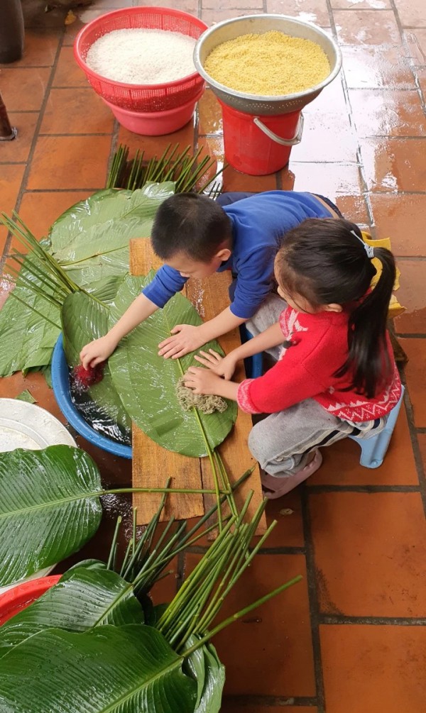Vừa rửa lá dong, trẻ nhỏ háo hức được nghe kể bao chuyện về tết