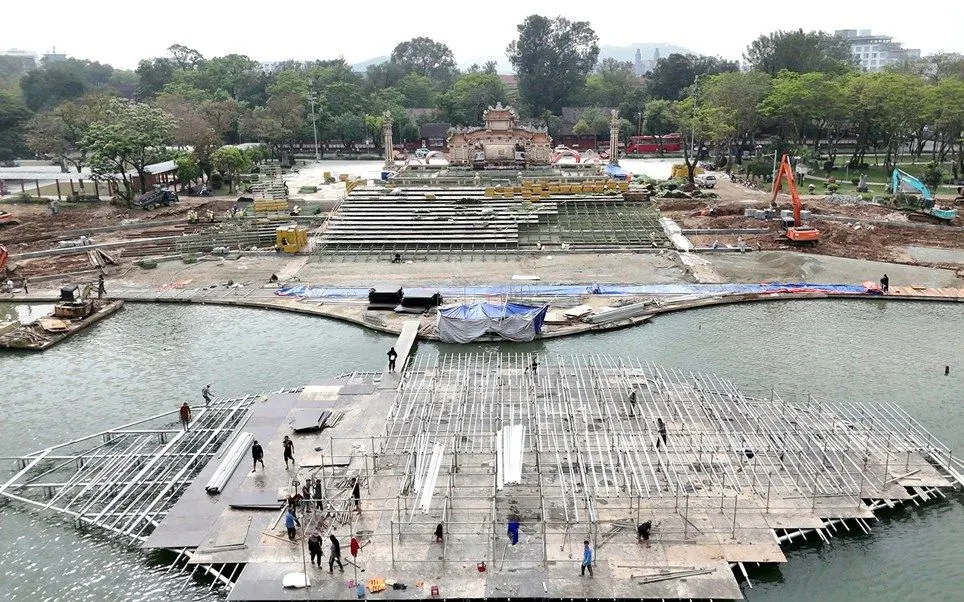Cùng với đó, đơn vị này cũng đã bàn giao 80% mặt bằng ở khu vực trên bờ để đơn vị thi công, lắp đặt khán đài. Hiện nay, đơn vị đang tăng tốc để thi công các hạng mục ở phía trên bờ, dự kiến đến hết ngày 15/3, sẽ bàn giao xong mặt bằng cho các đơn vị để triển khai kịp tiến độ.