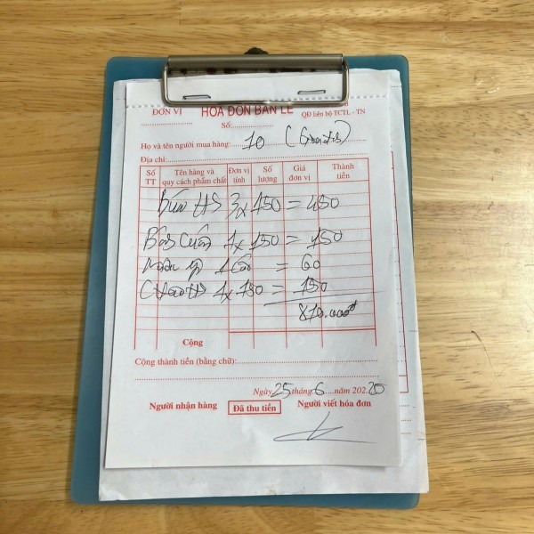 Hóa đơn thanh toán bữa ăn của đoàn khách 5 người