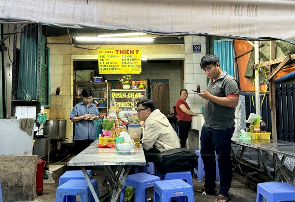 Cách quán chị Chi không xa, là quán chay lâu đời nhất trong con hẻm 702 Hồng Bàng này - Thiên Ý. Chủ quán cho biết ngày trước, hầu hết con hẻm là hàng chục quán bán món chay. Dần dà, số lượng quán chay cũng ít dần, một số quán bán đồ ăn mặn xuất hiện, nhất là khi sau dịch Covid-19.