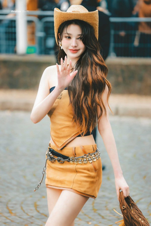 Jang Won Young (IVE): Mỹ nhân thế hệ mới tỏa sáng với phong cách đậm chất IT-girl tại Paris Fashion Week. Lấy cảm hứng từ miền Tây nước Mỹ, đại sứ Miu Miu ghi điểm bởi vẻ ngoài vừa phóng khoáng vừa thanh lịch với outfit tông nâu chủ đạo. Phụ kiện mũ cói vintage, trang sức hoa tinh xảo cùng túi xách hobo, thắt lưng độc đáo tạo nên tổng thể hài hòa, bắt kịp xu hướng giúp cô nàng trông càng sành điệu hơn. |