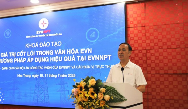Ngày 10 và 11/7/2025, tại Khánh Hòa, Tổng công ty Truyền tải điện Quốc gia (EVNNPT) tổ chức khóa đào tạo “Giá trị cốt lõi trong Văn hóa EVN và phương pháp áp dụng hiệu quả tại EVNNPT”.