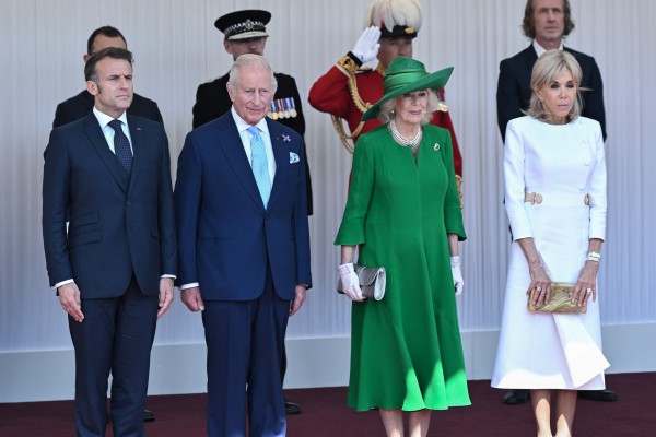 Tổng thống Pháp Emmanuel Macron, Vua Anh Charles III, Nữ hoàng Anh Camilla và Đệ nhất phu nhân Pháp Brigitte Macron (từ phải sang) tại Lâu đài Windsor ngày 8.7.2025 ẢNH: REUTERS