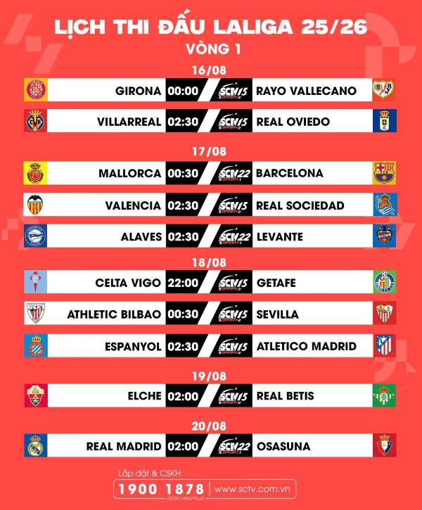 Lịch thi đấu vòng 1 LALIGA EA Sports 2025/26