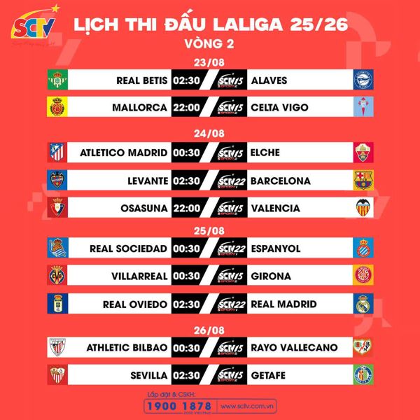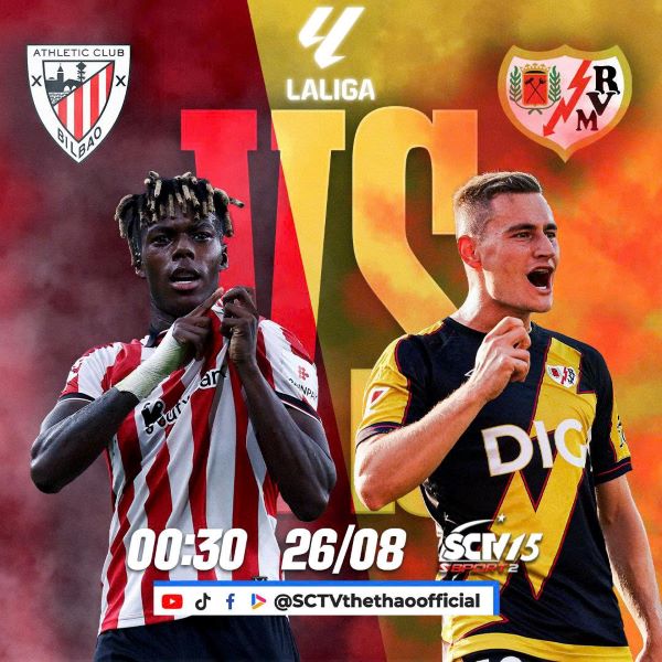 (Athletic Bilbao – Rayo Vallecano, 0h30 ngày 26/08, trực tiếp trên SCTV15)