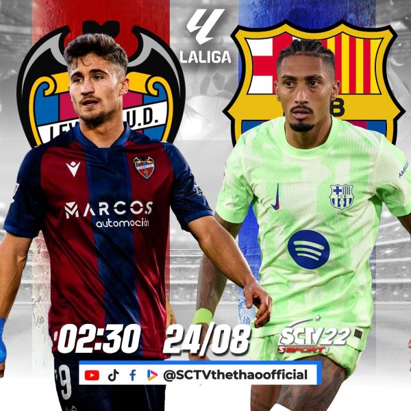(Levante – Barcelona, 02h30 ngày 24/08, trực tiếp trên SCTV22)
