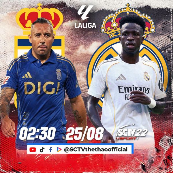 (Real Oviedo - Real Madrid, 02h30 ngày 25/08, trực tiếp trên SCTV22)