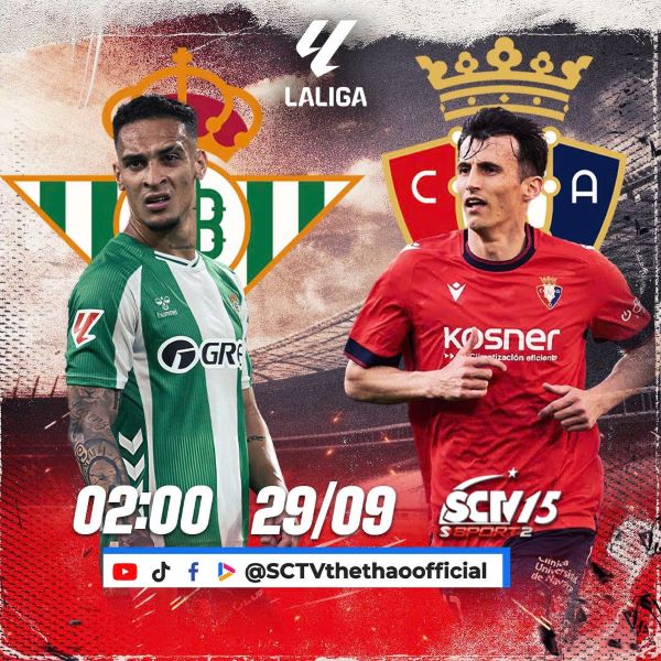 (Real Betis - Osasuna, 02h00 ngày 29/09, trực tiếp trên SCTV15)