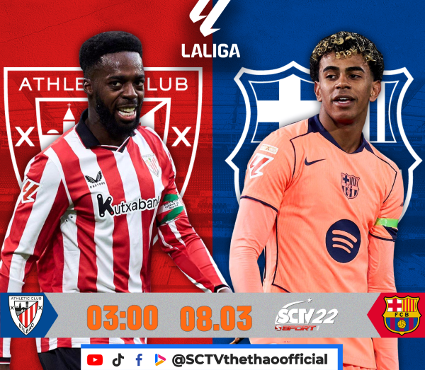 (Athletic Bilbao - Barcelona, 03h00 ngày 08/03, trực tiếp trên kênh SCTV22)