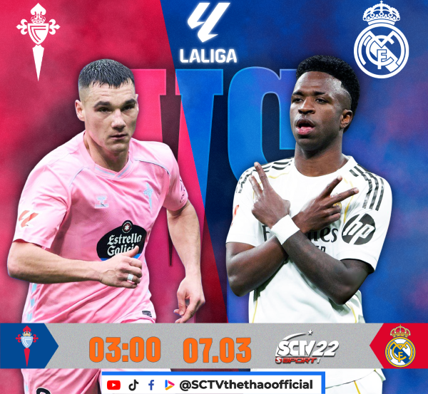 (Celta Vigo - Real Madrid, 03h00 ngày 07/03, trực tiếp trên kênh SCTV22)