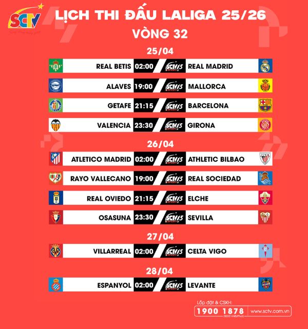 (Real Betis - Real Madrid, 02h00 ngày 25/04, trực tiếp trên kênh SCTV15)