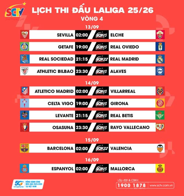 Năm nay, Giải vô địch quốc gia Tây Ban Nha LALIGA EA SPORTS phát trên chuỗi kênh SCTV Thể Thao có sự đồng hành của nhà mạng VinaPhone nhằm mang đến giải đấu chất lượng, siêu sắc nét nhất cho khán giả.
