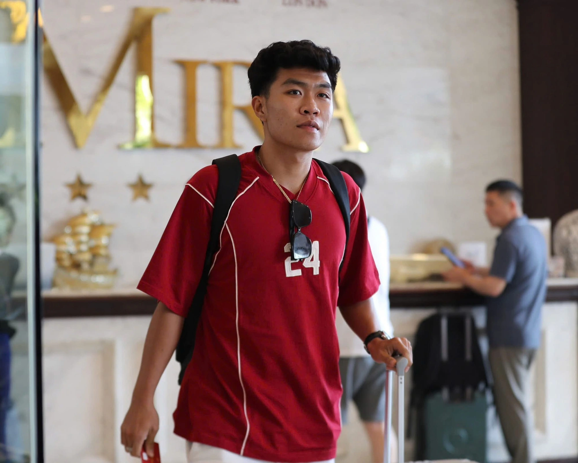 Châu Ngọc Quang cùng các cầu thủ khác của đội tuyển Việt Nam lên tập trung để chuẩn bị đấu Lào