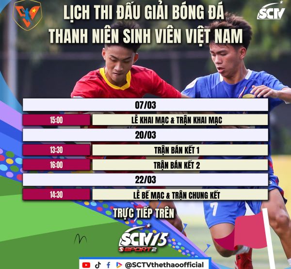 Tháng 3 tại Nha Trang sẽ nóng lên cùng những trận cầu tuổi trẻ – nơi khát vọng, đam mê và niềm tự hào màu cờ sắc áo sinh viên cùng hội tụ. SCTV hân hạnh gửi đến quý khán giả những diễn biến nóng hổi từ Giải bóng đá Thanh Niên sinh viên Việt Nam lần IV năm 2026 - Cúp THACO và Giải bóng đá Thanh Niên sinh viên quốc tế 2026 – Cúp THACO.