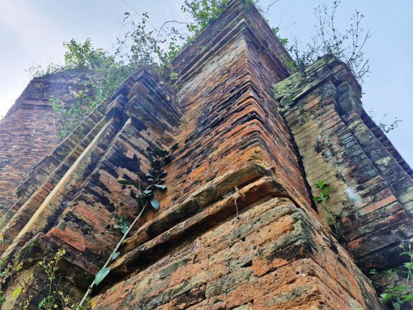 Trải qua hơn nghìn năm lịch sử, một phần gạch tháp Bằng An bị bào mòn ẢNH: MẠNH CƯỜNG